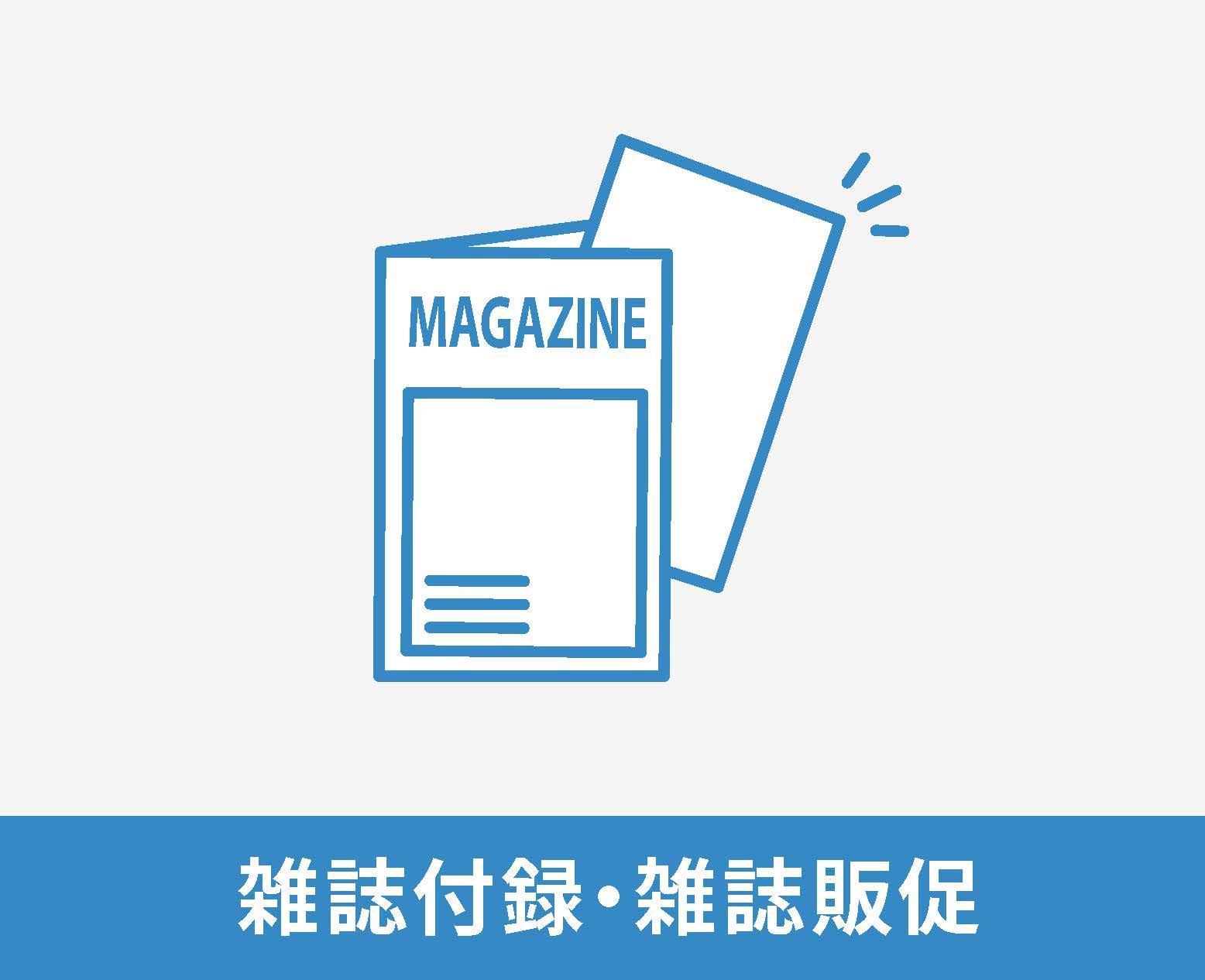 女性誌、ファッション誌、子供向け雑誌など、ジャンル問わず幅広く対応しています。商品企画から雑誌付録梱包、納品までトータル対応します。 【主な雑誌媒体】 ゼクシィ、じゃらん、MEN'S EX、Begin、LaLa Begin、3分クッキング、他